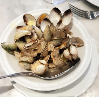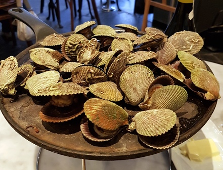 Déjeuner au restaurant La Cagouille. J’aime l’atmosphère de ce restaurant. Le personnel est sympathique et les clients sont le plus souvent des habitués. On choisit son menu en lisant une immense ardoise sur un pupitre, qui se déplace de table en table. La carte des vins est intelligente et tarifée raisonnablement. Mon menu consistera en des pétoncles farcis et un saint-pierre. Je choisis sur la carte des vins un Châteauneuf-du-Pape Château de Beaucastel blanc 2015. La couleur du vin est d’un jaune affirmé. Le nez est puissant et ce qui est très intéressant c’est que le vin ne fait pas du tout trop jeune. Il est bien affirmé avec un joli fruit doré, rond et puissant. Le vin est arrivé peu frais et cela lui va bien car il se montre plus gras, plus épais. Je ne m’attendais pas à tant de présence.