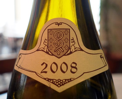 Le Chablis Grand Cru Valmur domaine François Raveneau 2008 est d’une forte acidité et d’une grande minéralité mais il éclate d’un fruit généreux ce qui le rend agréable, surtout lorsqu’il se réchauffe dans le verre. Sur les huîtres fines de claire numéro trois que j’ai prises, c’est le champagne qui est plus à son aise. Sur le pavé de cabillaud à la sauce aillée qui vient ensuite, le chablis trouve son envol, gagnant en gras et en rondeur. Une halte à la Cagouille, c’est comme si le temps s’arrêtait pour (comme on dit aujourd’hui) une pause-bonheur.