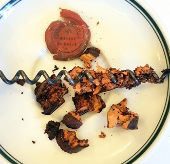 Avec les crues de la Seine j’avais anticipé des encombrements que je n’ai pas rencontrés aussi suis-je à pied d’œuvre pour ouvrir les bouteilles à 10h30. Je m’installe, je déploie mes outils, et débute la cérémonie d’ouverture non pas des jeux olympiques mais de cette phase si cruciale d’ouverture des vins. Le blanc de 1949 m’avait plu en cave car son niveau dans la bouteille est impeccable et la couleur que je devine à travers la bouteille poussiéreuse est de toute beauté. Le bouchon du blanc est de splendide qualité et si le bouchon se brise en quelques morceaux, c’est très naturel. Le nez me plait et promet des délices.