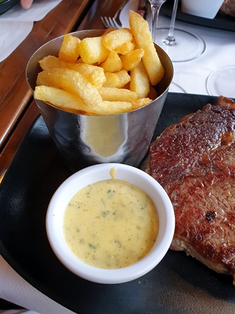 Etant en avance j’ai le temps de consulter la carte des vins et le nombre de bonnes pioches est très important. Nous discutons à trois et l’accord se fait très vite sur deux vins. Nous choisissons nos plats. Pour moi ce sera : pâté en croûte et entrecôte.