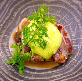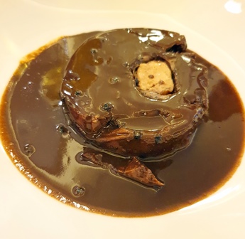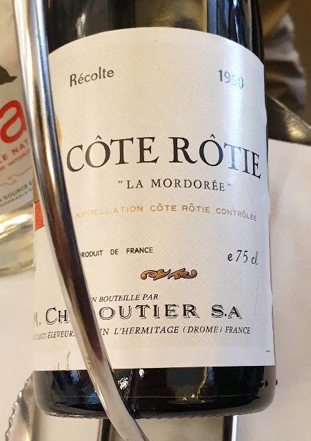 Le lièvre à la royale est classique mais très bon et Pierre nous explique qu’il a pris un grand soin de la façon dont le lièvre est traité après sa mort, ce qui a une influence sur la qualité de la chair et du sang. Cette recherche d’excellence est sympathique. Lorsque j’avais senti à l’ouverture la Côte Rôtie La Mordorée Chapoutier 1990, j’avais été enthousiasmé par le velouté délicat de son parfum. En bouche, cette Côte Rôtie est étonnamment féminine, jouant sur son charme et son velours pour nous offrir un vin gracieux, charmant, et capable d’affronter un lièvre viril. Cette combinaison est particulièrement pertinente et on mesure à quel point le millésime 1990 qui a maintenant 29 ans apporte sérénité, cohérence et équilibre.