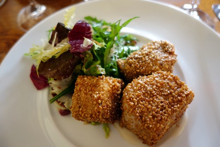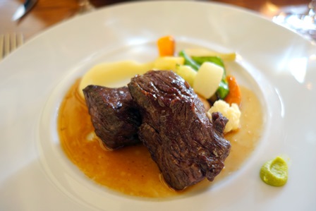A une table voisine déjeunent un représentant en vins de plusieurs domaines du Rhône et parfois ailleurs, et un grand critique de vin dont l’amitié m’honore. Atterrit sur ma table un verre de vin charnu, gourmand et plaisant, un Clos Triguedina les sélections parcellaire « les Galets » Nozières Jean Luc Baldès Cahors 2007. Le vin est riche et tannique et immédiatement ce qui me frappe c’est que l’année 2007 lui va parfaitement car rien n’est surjoué. Il paraît plus gourmand que le bourgogne mais lorsque je reviens au bourgogne, je suis plus convaincu par la richesse vibratoire et la complexité du Chambolle-Musigny. Les deux vins sont très attachants.