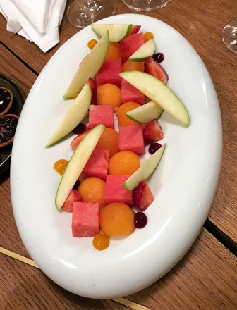 Le Champagne La Colline Inspirée Blanc de Blancs Jacques Lassaigne sans année est l’opposé du précédent, tout en charme et douceur. Heureusement les champagnes ont été servis dans cet ordre. La truite est divine et le vin brille. C’est un plat osé qui explore des saveurs abruptes et on sent à quel point le chef est libre. Les girolles s’accordent aussi mais pourquoi ne pas essayer aussi le Bandol Cabassaou Domaine Tempier 2006 ? Ce vin est une merveille d’équilibre, carré, droit et persuasif. Quel vin agréable. La volaille est divine. Nous sommes d’accord autour de la table de penser que ce restaurant doit avoir au plus vite deux étoiles. Le chef paraît tellement à son aise et heureux qu’il ose des saveurs passionnantes.