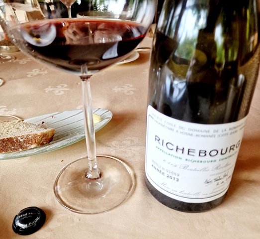Au restaurant, je demande qu’on ouvre les vins rouges jeunes au dernier moment pour profiter de l’éclosion de la fraîcheur des vins. Cette sensation dure environ pour la moitié de la bouteille puisqu’après, le vin ayant eu une aération plus grande, devient plus serein et moins fragile. Il est agréable de constater que boire le Richebourg Domaine de la Romanée Conti 2013 n’est pas un infanticide. Il a déjà une très belle personnalité, et la délicate fragilité qu’il montre au premier contact est un bonheur rare. Le vin est riche, plein d’énergie mais ce sont ses frémissements que j’adore.