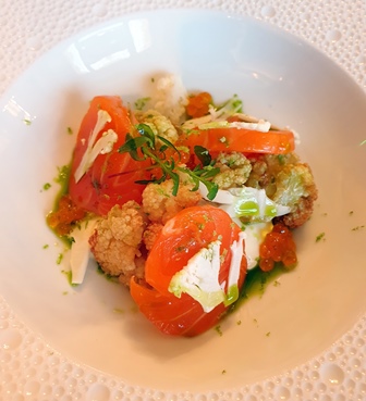 Déjeuner au restaurant Les Climats. Le lieu est toujours aussi beau et spacieux. La carte des vins est impressionnante. Nous sommes deux et nous prenons le même menu à base de poisson, mais mon invité préfère boire du vin rouge.