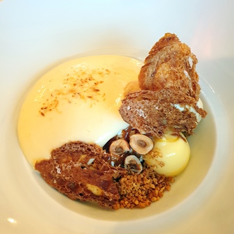 Le dessert qu’on nous a proposé avec insistance ne s’imposait pas, même s’il est bon et léger. Le lieu est charmant et atypique, le service est efficace et le sommelier très compétent. C’est une table à conseiller aux amoureux des vins de Bourgogne, mais aussi aux autres.