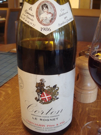 Corton "Le Rognet" de Chevalier Père & Fils 1986 qui, malgré le livre, ne justifie pas de l’appellation Grand Cru en Corton.