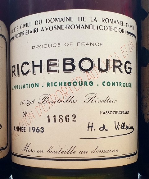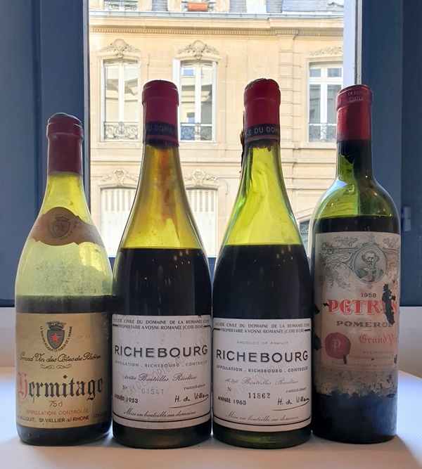 Je lui propose d’apporter des vins de bas niveau car c’est avec un amateur comme lui que je peux prendre des risques, et j’en choisis quatre en cave, un Richebourg Domaine de la Romanée Conti 1963, un Richebourg Domaine de la Romanée Conti 1953, un Pétrus 1958 et un Hermitage L.De Vallouit 1978. Nous choisirons sur place ce que nous ouvrirons.