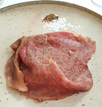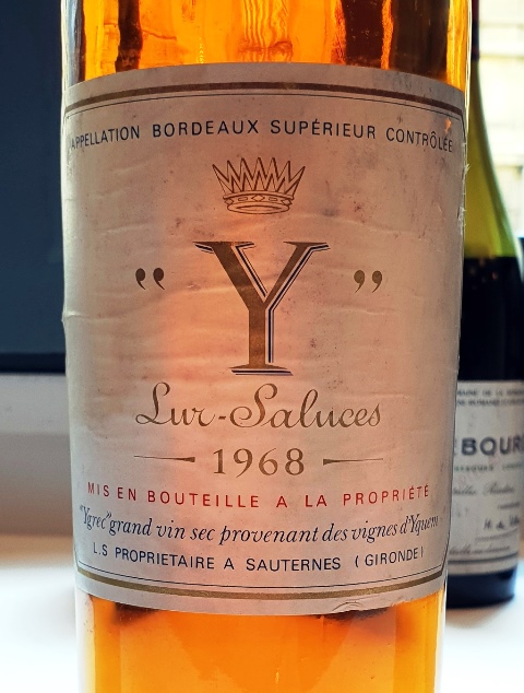 Pour l’entrée en piste de l’Y d’Yquem 1968, je demande des tranches fines de carpaccio de wagyu, et la cuisine lee prépare légèrement brûlées au chalumeau. L’Y d’une belle couleur claire et ensoleillée est un vin riche qui évoque un Yquem devenu sec. Il y a en effet de belles traces de botrytis qui égaient ce vin charmant et généreux. C’est probablement l’un des Y les plus puissants qui soient. L’accord avec le wagyu est encore plus spectaculaire que l’accord du Pétrus avec le poisson cru.