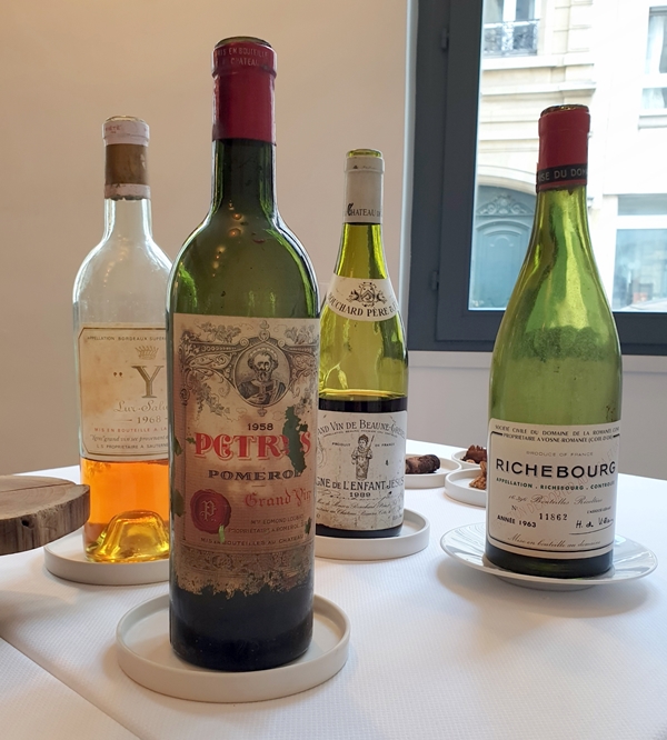 On peut dire que, sans le vouloir, nous avons ‘cassé les codes’ et que tous les accords se sont montrés pertinents. Les vins ont brillé et je classerais ainsi en premier l’Y car il est un Y parfait, riche d’un botrytis affirmé toute en gardant une belle vivacité. En second je mettrais le Pétrus 1958, d’une richesse accomplie et d’une grande présence, puis le Richebourg joliment romantique et d’un sel racé. Enfin le Beaune Grèves a bien accompagné les ormeaux mais il lui a manqué d’un peu de pureté.