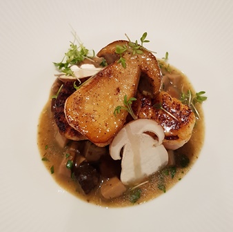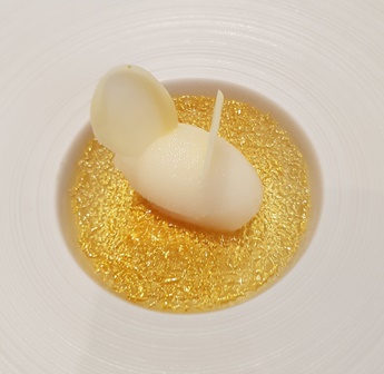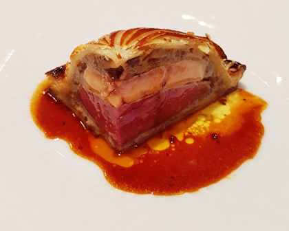 Ce menu est copieux et deux plats sont d’un accomplissement exceptionnel. Il serait impossible d’imaginer que l’équilibre du plat soit améliorable. C’est, toutes proportions gardées, comme le David de Michel-Ange, la perfection absolue. Il s’agit du cabillaud et de la tourte de pigeon qui a évoqué pour mon ami les tourtes de Gérard Besson, le prince des gibiers. D’autres plats sont superbes aussi mais n’atteignent pas la même sensation d’aboutissement parfait. L’œuf est gourmand, le caviar délicieux n’arrive pas à soutenir la présence d’une huître extrêmement iodée et imprégnante. Le consommé est parfait comme l’oignon. Le homard est un peu dominé par le vinaigre de xérès, le poulet est aussi très gourmand. Quant aux desserts ils sont raffinés et délicieux. C’est une cuisine qui mérite bien ses deux étoiles avec deux plats au sommet.