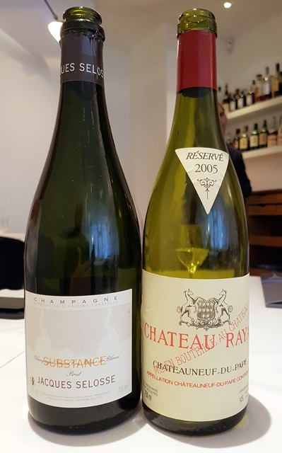 Ce qui me plait dans ces deux vins c’est ce que sont des sauvages indomptables. Ils ne font rien pour séduire et exposent leurs originalités et leurs personnalités affirmées. J’aime l’impression de fumé du Selosse, j’aime la râpe avec des intonations de chocolat et de café en traces du Rayas. Les deux vins me fascinent car ils me disent : « cherche ce que je suis, mais tu ne trouveras pas ». On est au sommet de la Champagne et au sommet du Châteauneuf-du-Pape.