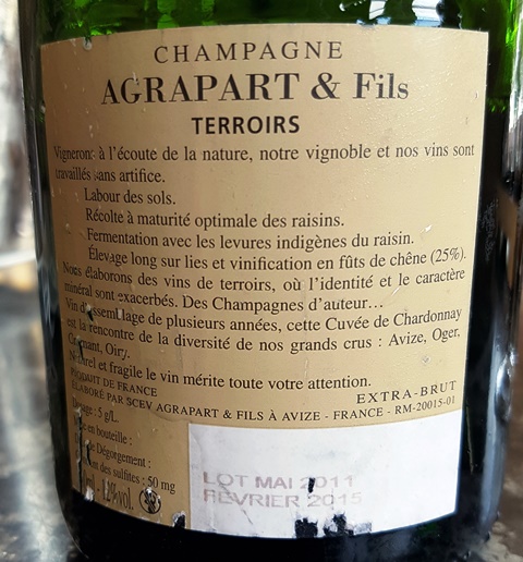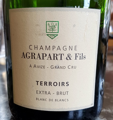 Déjeuner au restaurant San Felice de l’hôtel du Castellet est une institution lorsque nous avons nos petits-enfants. Des gouttes de pluie passagères imposent de prendre l’apéritif à l’intérieur de la belle salle du bar. Nous prenons un Champagne Agrapart Terroirs extra brut Blanc de Blancs à base de vins de 2011 dégorgé en février 2015. Très précis, pur, droit, il est agréable à boire mais pour mon goût il manque un peu de largeur alors que mon fils l’aime tel qu’il se présente. De toute façon nous l’apprécions en grignotant des olives, biscuits au parmesan et des noisettes, amandes et grains de raisin secs.