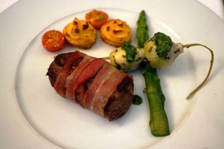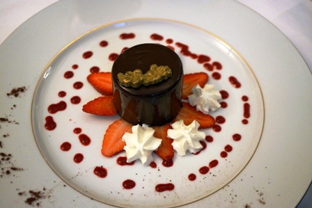 Nous n’avons pas notre salon habituel et nous déjeunons dans la grande salle à manger du club. Le menu est ainsi agencé : assiette de fruits de la mer / rôti d’agneau lardé, asperges vertes, haricots fins, pomme Duchesse / fromages affinés Eric Lefebvre / angeline au chocolat. La caractéristique de ce lieu, c’est que Thierry Le Luc est toujours à la recherche des meilleurs produits qu’il fait cuisiner par le chef. Et c’est réussi.