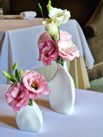 Nous avons une très jolie table dans la belle salle du restaurant, joliment décorée. Martin Jean, l’excellent sommelier nous dit que le champagne de bienvenue qui est offert est un Champagne Pascal Agrapart Minéral Extra Brut 2016.