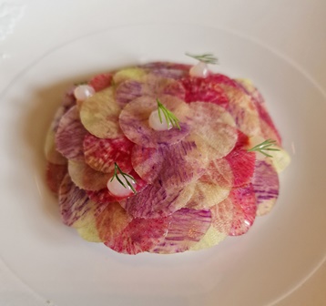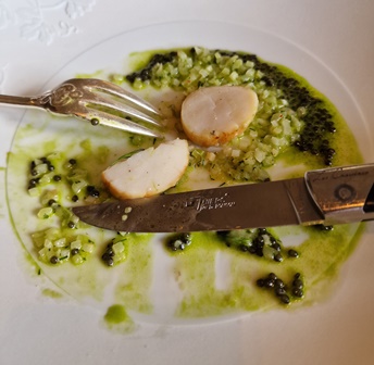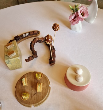 Des amuse-bouches de grand talent et gourmands accompagnent le Champagne Pascal Agrapart Minéral Extra Brut 2016 au nez très incisif et tranchant. La bouche confirme le message du parfum. Ce champagne est puissant, viril et de grande personnalité. Il me semble qu’il pourrait accompagner tout un repas avec bonheur, car son énergie n’exclut pas le charme et la convivialité. C’est un grand champagne.