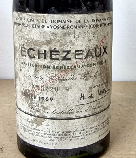 Ce déjeuner au restaurant Pages a pris des tours et des détours. Ce devait être un déjeuner d’amis offert par Stanislas, mais quand j’ai proposé un vin il me fut répondu comme dans la publicité : « pas assez cher mon fils ». Et on me fit savoir qu’il y avait du ‘beau monde’. Titillé par cette incertitude j’ai pensé qu’il fallait taper fort et j’ai choisi un Haut-Brion rouge 1947 au niveau quasiment dans le goulot. Et comme je venais d’acquérir des vins de la Romanée Conti dont certains avaient des bas niveaux, je me suis dit que l’occasion était bonne pour ouvrir une des bouteilles, un Echézeaux Domaine de la Romanée Conti 1969 au niveau bas, sans garantie de résultat.