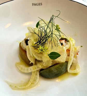 Pour le homard accompagné de fenouil, nous buvons un Montrachet Domaine Comtes Lafon 2012. Le vin est magnifique, équilibré, plein et frais, mais le homard trop froid à la sauce trop acide ne rend pas service au vin, au contraire. Mais le chef Ken ne peut pas être tenu pour responsable car il ne connaissait aucun des vins.