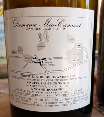 Pour la délicieuse viande extrêmement gourmande elle aussi, j’ouvre un Clos de Vougeot Domaine Méo-Camuzet 2001. Le niveau est à trois millimètre sous le bouchon. La couleur est encore noire de jeunesse et le nez est très intense et profond. Ce sont des fruits noirs qui apparaissent au nez, ainsi que des bois tropicaux.