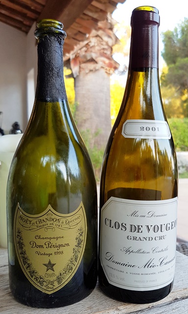 Le lendemain il reste un fond de chacun des deux vins. Le Dom Pérignon 1998 évolue vers des notes plus citronnées, gardant toujours autant de charme. Et le Clos de Vougeot 2001 est beaucoup plus floral, avec des évocations d’anis, de menthe et en arrière-plan de cassis. Ces deux vins ne sont que du plaisir.