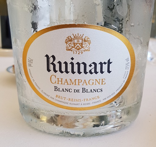 Le Champagne Ruinart Blanc de Blancs sans année est vraiment très agréable et vif. Il a une belle tension et se boit avec plaisir. J’aime son rythme en bouche et je ne suis pas le seul car nous consommerons trois bouteilles à six.