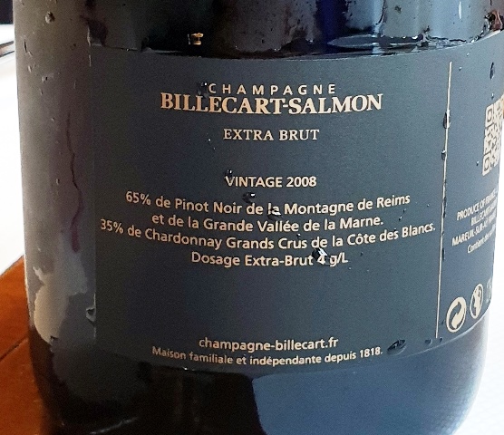 Nous commençons par un Champagne Billecart-Salmon Extra Brut 2008 qui est d’une belle expression dans ce beau millésime. Il est un peu strict du fait de l’absence de dosage mais pas trop et sait se montrer assez large pour entraîner nos adhésions. Le menu que je suggère est : poêlée de cèpes, émulsion au persil / bœuf bourguignon, pommes de terre et oignons.
