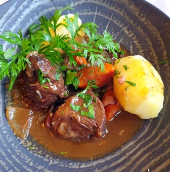 Et ce qui est amusant, comme nous vivons en l’ère macronienne, c’est que nous avons pu observer que le vin était un adepte du « en même temps ». Car clairement la première bouteille de ce vin devait vivre son éclosion comme je l’avais souhaité tant sa subtilité la méritait. Et la deuxième bouteille, plus stricte, moins virevoltante, aurait profité d’un carafage qui l’aurait épanouie. Il n’y a donc pas de vérité absolue mais je suis heureux que la première bouteille ait vécu ce que j’aime, l’éclosion qui fait ressembler le vin aux ailes charmantes des danseuses du Lac des Cygnes. Car le vin est subtil, délicat, dosant ses charmes à tout moment de son passage en bouche. Il est riche sans l’être, aérien sans l’être, car rien n’est imposé, tout est gracile ce qui est franchement étonnant de la part de ce solide vin. On l’a retrouvé dans sa forme plus virile sur la deuxième bouteille. Le bœuf bourguignon est un plat de plaisir campagnard. On se sent bien, la pomme de terre adoucissant la sauce.