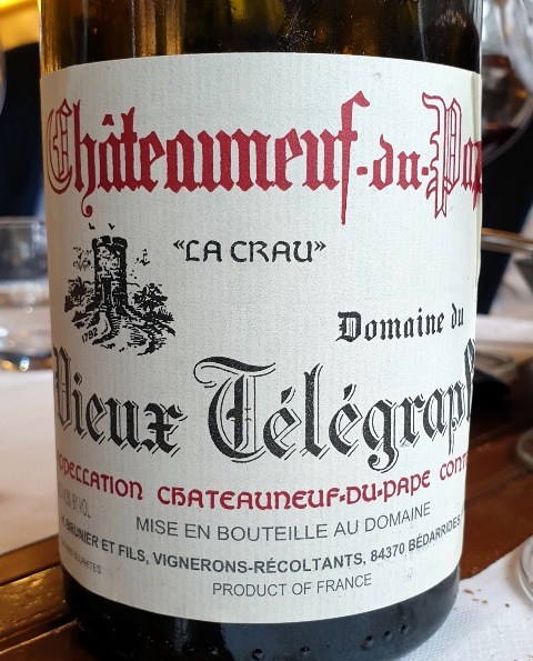 Le bœuf bourguignon a été cuit pendant 22 heures, mais j’aurais ajouté sans problème 22 heures de plus pour avoir encore plus de moelleux dans la mâche de la viande délicieuse. Le Châteauneuf-du-Pape Vieux Télégraphe 2005 a donné lieu à une petite querelle d’école entre Pierre Vila Palleja et moi. Pierre aurait aimé carafer le vin pour qu’il soit épanoui dès le début de la dégustation alors que je souhaitais voir son éclosion et profiter de la fragile ouverture d’un vin délicat.