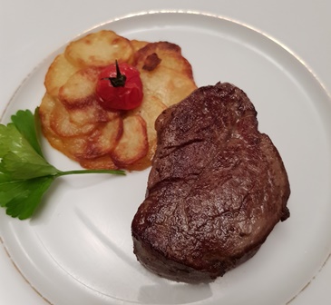 Le menu composé par le chef avec Thierry Le Luc et l’ami qui nous invite est : œuf mollet sur une pastilla et son jus avec sa pince de homard bleu / filet de bœuf Wagyu, pommes Anna / fromages affinés / Pavlova maison. La cuisine du chef est inspirée et goûteuse. Nous sommes gâtés.