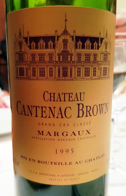 Pour le fromage nous buvons un Château Cantenac-Brown 1995 qui, malgré ses 23 ans, est d’une jeunesse rare. Il faudra attendre encore une vingtaine d’années pour que ses belles qualités s’élargissent comme les pétales d’une fleur.