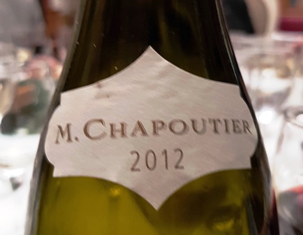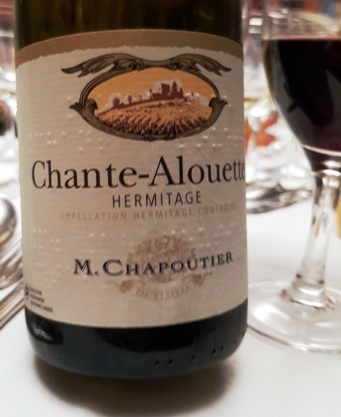 Le Saint-Joseph Les Granits M. Chapoutier 2011 est un vin blanc riche, opulent, de belle présence. Il est suivi par un Hermitage blanc Chante-Alouette M. Chapoutier 2012 large et raffiné, de belle personnalité. Avec ces vins de Chapoutier, notre ami nous à gâtés.