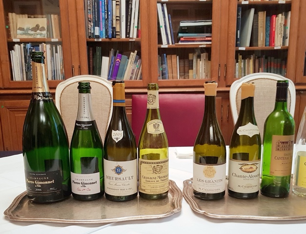 Le Champagne Pierre Gimonnet & Fils Cuvée Fleuron magnum 2006 m’était apparu un peu dosé lorsque je l’avais bu avant l’arrivée des hors-d’œuvre. Mais avec eux, le champagne offre un chardonnay très agréable et consensuel. Lorsqu’il est fini, le Champagne Pierre Gimonnet & Fils blanc de blancs brut sans année se montre beaucoup plus vif et cinglant que le 2006. Je l’aime beaucoup et j’en profiterai aussi sur les huîtres servies à table.