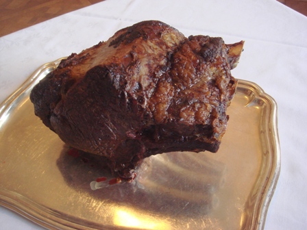 Une impressionnante pièce de bœuf est découpée devant nous. Une fois de plus la qualité de la chair est à signaler. L’accord avec le Vega Sicilia Unico 1964 est purement sensuel et je demande à Thierry Le Luc qu’il le découvre avec nous. Le vin est un peu torréfié, avec une tendance au café ou au caramel. C’est un vin lourd, noir presque, qui envahit le palais de sa trace profonde. Lorsque j’avais senti les vins à l’ouverture, j’avais placé en second celle des deux bouteilles de Vega Sicilia qui me plaisait le plus au nez. La seconde est un plus fatiguée ce qui est dommage, mais le charme agit toujours.