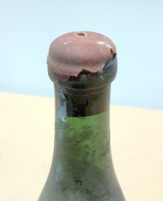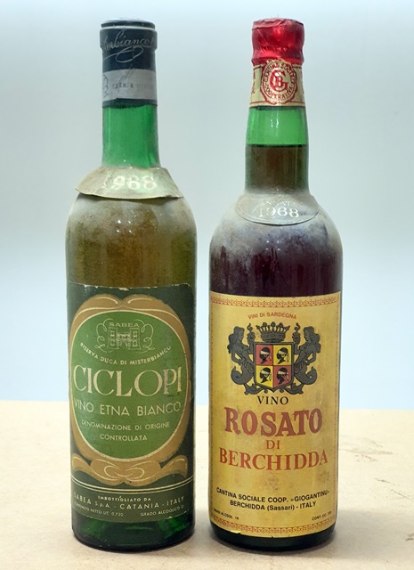 J’ouvre le vin Ciclopi Vino Etna Bianco 1968, vin blanc que je souhaite confronter à des Dom Pérignon, et j’offre au chef l’autre vin italien, Vino Rosato Di Berchidda Vini di Sardegna 1968 que j’espère boire avec lui en une autre occasion, car j’imagine volontiers qu’il y aura beaucoup de champagnes à table ce midi. Le bouchon du vin blanc italien vient lui aussi entier malgré quelques brisures qui se produisent lorsque le goulot n’est pas un cylindre parfait. Le parfum du blanc italien est d’une intensité extrême et évoque un vin jaune puissant. Voilà qui promet. Inutile de préciser que Marco ne connaissait aucun de ces deux vins de 1968.