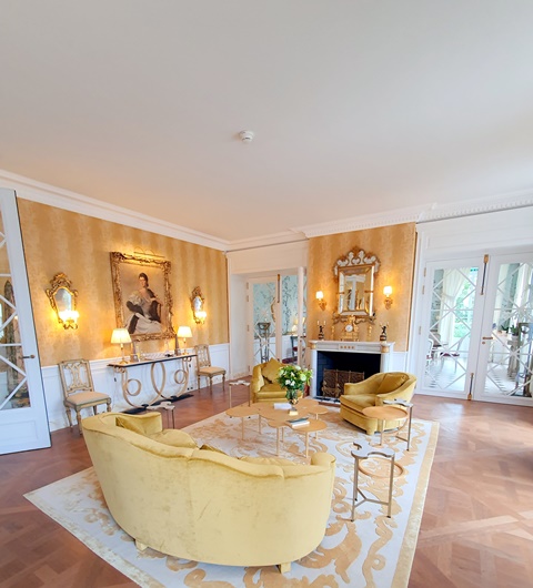 J’arrive au château une heure avant le rendez-vous prévu, afin de pouvoir ouvrir mes vins. Je suis accueilli par Emmanuel Pérignon manager du château, dont le patronyme est un heureux hasard. Il me fait visiter les importantes modifications des espaces dont une me cause une grande perplexité. La structure extérieure du château n’a pas changé, mais les bâtiments annexes ont été détruits ou transformés. On y accède par la cour d’entrée ou bien par un tunnel souterrain et la salle à manger de réception se trouve au sous-sol de ce bâtiment annexe. Alors que le château de Saran jouit d’une vue imprenable sur des dizaines de kilomètres de vignobles champenois, la salle à manger, au lieu de profiter de cette vue, sera aveugle, en sous-sol. Bien sûr elle est magnifiquement décorée, mais malgré les explications techniques qui me sont données, je suis décontenancé.