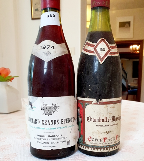 Le Pommard Grands Épenots Michel Gaunoux 1974 au niveau aussi parfait a une couleur extrêmement claire. Le parfum de ce vin de la Côte de Beaune est excitant mais moins exubérant que celui du vin de la Côte des Nuits. En bouche, le goût est à l’opposé de celui du 1967. C’est un vin de belle râpe, sans concession, dont le côté salin évoque celui des vins de la Romanée Conti. Les deux vins sont parfaits et si dissemblables qu’il est difficile de dire lequel on préfèrerait. J’ai malgré tout une tendance à aimer les vins terriens qui ne veulent pas séduire et j’ai donc un petit faible pour le Pommard, sachant que le caractère gourmand du Chambolle-Musigny le met à quasi égalité.