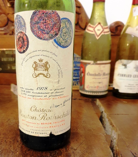 Il faisait soif aussi ai-je ouvert sur l’instant un Château Mouton-Rothschild 1978 absolument superbe, le jeune premier conquérant doté aussi d’une belle sagesse qui a brillé sur les fromages, surtout sur un beau chèvre, et a accompagné poliment la divine tarte aux quetsches de ma femme.