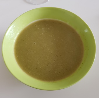Une soupe aux légumes verts sert de plat central qui préserve nos capacités futures à festoyer et le reste du Vega Sicilia Unico 1996 accompagne un Jort qui a, comme le vin rouge, profité d’une nuit pour s’épanouir.