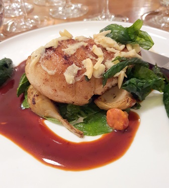A une table voisine deux personnes déjeunaient. En quittant leur table ils nous ont dit qu’ils avaient une surprise pour nous. Le sommelier nous apporte après leur départ des verres de Champagne Moët & Chandon 2002 qui tombe à point nommé pour démontrer une fois de plus que le vin, c’est le partage.