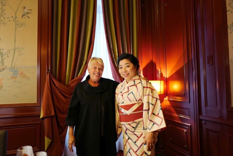 Le train d’Aubert de Villaine a quelques minutes de retard et comme beaucoup de personnes évitent les transports en commun, il y a une queue qui dissuade Aubert de prendre un taxi. Il arrive donc à une station de métro et par SMS me demande de le guider pour trouver le Taillevent. Par mesure de précaution je me rends à sa rencontre avec Tomo et de loin sur l’avenue Friedland, je vois qu’il est seul. Sa femme n’est pas avec lui alors que mon épouse et celle de Tomo, habillée d’un ravissant kimono, étaient venues pour partager le repas avec elle. Je suis triste car je souhaitais depuis longtemps que nos rencontres avec Aubert associent aussi son épouse. Dommage.