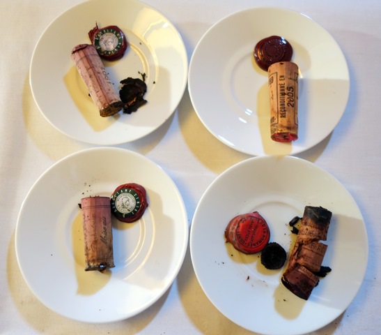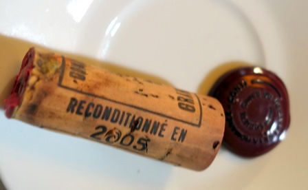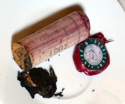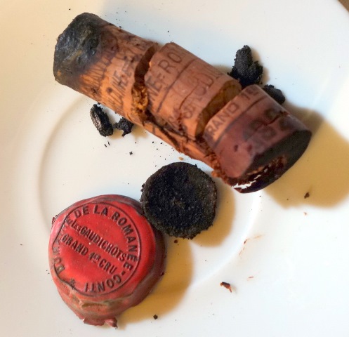 Laurent me filme pendant que j’ouvre les bouteilles. Les vins d’Henri Jayer étant faciles à falsifier, j’inspecte les beaux bouchons qui me semblent authentiques et les parfums me rassurent. Le bouchon du Grand Echézeaux Domaine de la Romanée Conti 1979 est très serré dans le goulot et la bouteille a été reconditionnée en 2005. Mon attention est grande quand j’ouvre la bouteille des Gaudichots 1929. Le bouchon est parfait, vient entier mais cisaillé en quatre morceaux. Le parfum est rassurant. Ouf, nous allons avoir une grande bouteille.