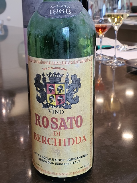 J’ouvre le Vino Rosato de la coopérative de Berchidda, vin de Sardaigne 1968 qui titre 14° que j’avais apporté il y a quelques mois. Sa couleur rose est très soutenue, le nez est profond et en bouche ce qui est impressionnant c’est la jeunesse de ce vin de 52 ans. Il est équilibré, solide, carré, et nous guetterons ses réactions sur les plats.