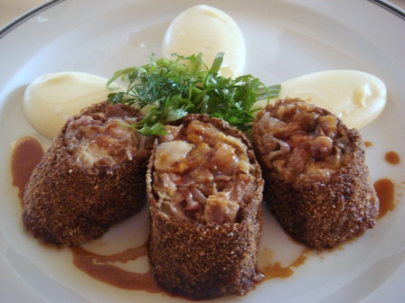 Sur le pied de porc à la crémeuse purée, c’est un verre de rouge qui est déposé sur ma table. C’est pour moi un bordeaux, plutôt jeune, dont aucune aspérité particulière ne me permet de situer le climat. Lorsque Daniel me dit qu’il s’agit du Château Haut-Marbuzet 2004, j’ai la réaction de l’inspecteur Bourrel : « bon sang, mais c’est bien sûr ! », car ce vin a fait mon ordinaire pendant plusieurs années au restaurant proche de mon entreprise où j’avais mon rond de serviette. A l’époque, il y a vingt ans de cela, le Haut-Marbuzet était souvent considéré comme le plus méridional des bordeaux. Aujourd’hui, du fait de la montée en alcool de tous les vins, il est dans la norme. J’aime son caractère velouté et bien construit, le tannin étant discret. J’aime un peu moins une simplification du message, qui en fait un vin trop policé.