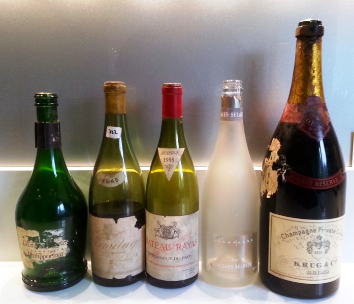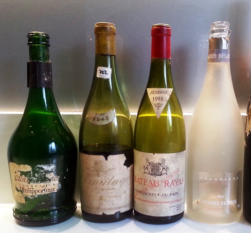 L’Hermitage Audibert et Delas 1945 a une couleur désagréable, terreuse. Le nez annonce une déviation. En bouche, l’attaque est agréable, plutôt joyeuse et c’est le finale qui gâche tout, avec une acidité abrupte. Nous reviendrons plus tard sur ce vin qui ne montrera aucun retour à la vie. C’est dommage que le témoignage d’un tel Hermitage soit perdu. Ma femme avait prévu pour lui un filet de bœuf avec une purée façon Robuchon et des frites de céleri. Il faut donc un rouge généreux pour se substituer au 1945.