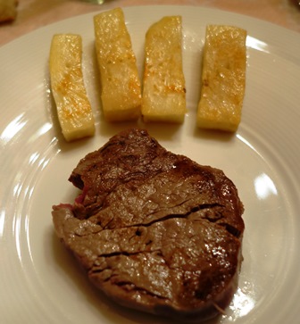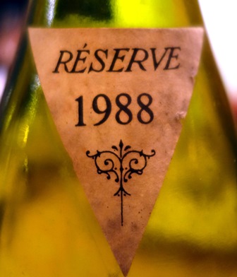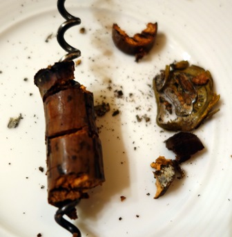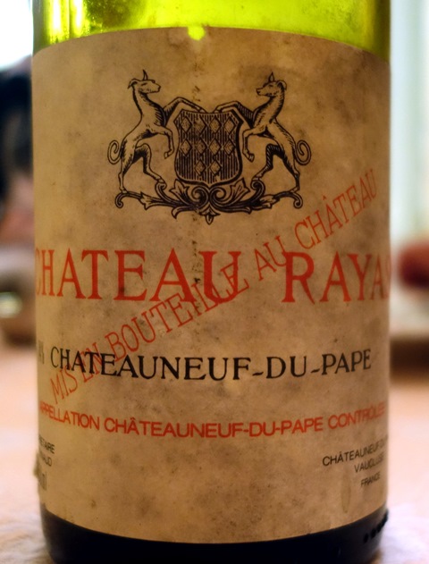 Je vais chercher en cave un Château Rayas Châteauneuf-du-Pape 1988. Le niveau est très beau et la couleur prometteuse. Le bouchon plutôt sec vient normalement. Je verse deux verres qui montrent une belle couleur rouge sang, en fort contraste avec la couleur de l’Hermitage. Aïe ! Il y a une odeur de bouchon. En bouche, le fruit rouge est très généreux. Le vin semble ne pas être affecté par l’odeur de bouchon. Mais progressivement on note la déviation. Il y a des évocations de truffe noire qui font que l’on imagine que le Rayas aurait été croisé avec un Vega Sicilia Unico, car le vin fait plus sudiste que ce que donne normalement Rayas. Comme le vin est buvable, nous le buvons, mais je ressens une certaine frustration.