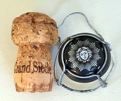 J’ouvre aussi un Champagne Laurent-Perrier Grand Siècle que j’estime des années 60 ou début des années 70 ce qui est confirmé par l’absence de pschitt et le fait que le bouchon ne veut pas sortir, le haut se déchirant et le bas ne venant qu’au tirebouchon.