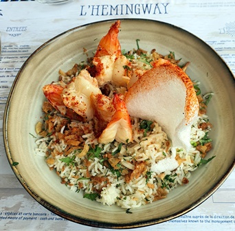 Le lendemain, nous nous rendons avec notre nièce au restaurant L’Hemingway à La Londe des Maures, restaurant installé sur une jolie plage et décoré avec goût. On y mange bien car les produits sont bons. J’ai décidé de ne pas boire sauf de la bière mais je me rattraperai lors d’une prochaine visite en ce lieu que j’apprécie.