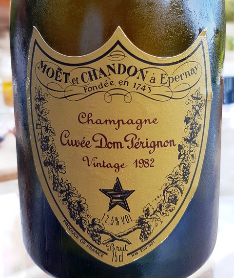C’est le dernier soir de Sarah dans notre maison du sud. J’ai envie d’ouvrir un champagne que j’aime tout particulièrement, le Champagne Dom Pérignon 1982. Cette année est particulièrement romantique et délicate pour beaucoup de maisons de champagne. Pour Dom Pérignon c’est une délicatesse. Le bouchon vient facilement et c’est incroyable comme il est incliné à sa base, comme un béret basque mis de travers. Il me faut vite sentir pour savoir si le champagne en est affecté. La couleur est plus ambrée que ce que j’attendais et le parfum est totalement pur. Le vin n’a pas souffert. Dès la première gorgée, encore froide, on est conquis par le discours galant de ce champagne raffiné. Il y a des fruits jaunes, une acidité discrète une vivacité contrôlée, mais c’est surtout la complexité qui est entrainante. Comme pour les précédents apéritifs la poutargue, le saucisson de porc et sanglier, les petites sardines, les tranches de bonite à l’huile d’olive conviennent parfaitement. Il reste un peu de foie gras qui s’accorde aussi, le gagnant comme précédemment étant le saucisson. Plus le champagne se réchauffe et plus il est chaleureux. On se sent bien avec ce champagne qui ne cherche pas à nous épater, mais seulement à nous faire plaisir.