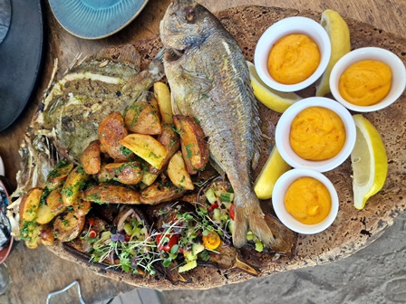 Quelques jours plus tard, nous revenons au même restaurant avec ma fille cadette. Etant autorisé à venir avec mes vins je les choisis plus jeunes pour que le maître d’hôtel et son épouse puissent en profiter. J’ai choisi un Champagne Krug Grand Cuvée 163ème édition. Un gros pschitt est apparu lorsque je l’ai ouvert quatre heures avant le dîner. Il a une belle couleur dorée et un parfum élégant. La bulle est très active. Je dois dire – à mon goût – que la bulle est trop puissante.