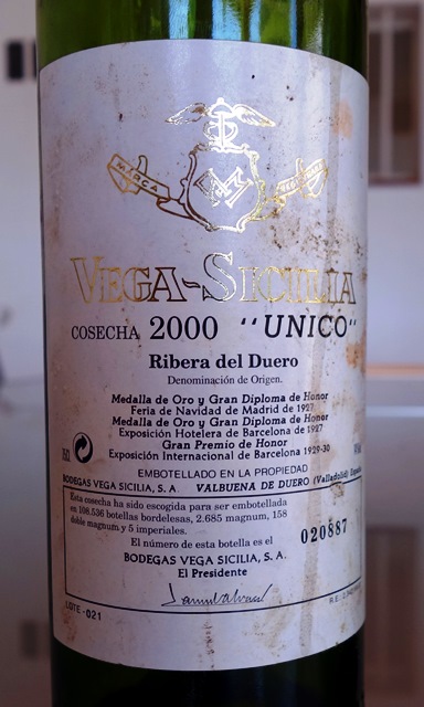 Vient ensuite un Vega Sicilia Unico 2000. Le nez est classiquement de cassis et de fruits noirs, avec une pointe de poivre. En bouche, l’attaque est elle aussi classique avec un joli cassis. Mais c’est alors qu’une fusée intersidérale nous emmène dans l’infini. Car le finale de ce vin est une explosion atomique. Il y a des petits grains de cassis pilés qui sont les étoiles brillantes d’un feu d’artifice, sur un fond merveilleusement mentholé. L’attaque est sage, le finale est une explosion, avec force et fraîcheur. C’est diabolique et tétanisant. Nous nous regardons tous tant ce finale paraît invraisemblable. S’il fallait un déclic – dont je n’ai pas besoin – pour que j’adore le Vega Sicilia Unico, ce serait avec le tourbillon vertigineux de ce 2000 qui est encore très jeune, mais qui est affolant par cette fraîcheur mentholée.